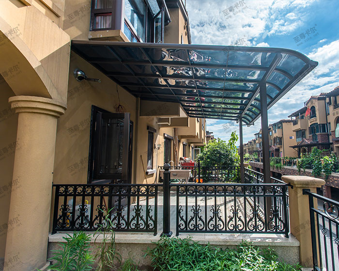 另外,至尊卡爾還選擇了用優質高強度鋁合金搭配耐力板,杜絕了玻璃雨棚骨架腐蝕、生銹的問題,更牢固,也免去了很多維護產生的費用。更劃算。